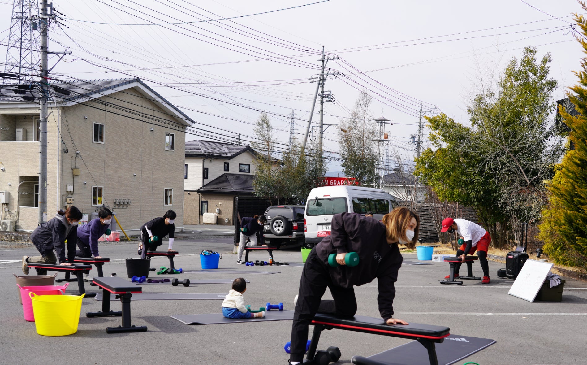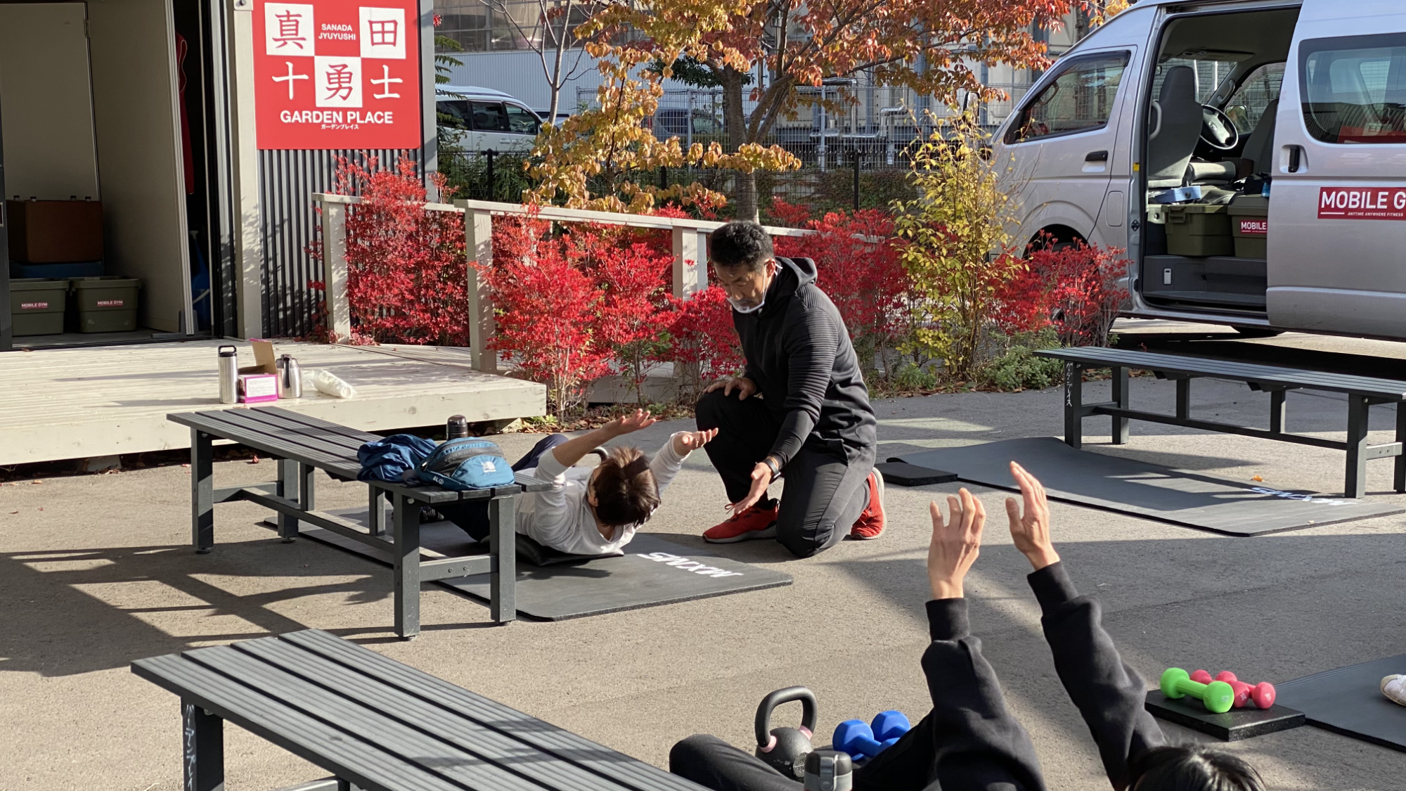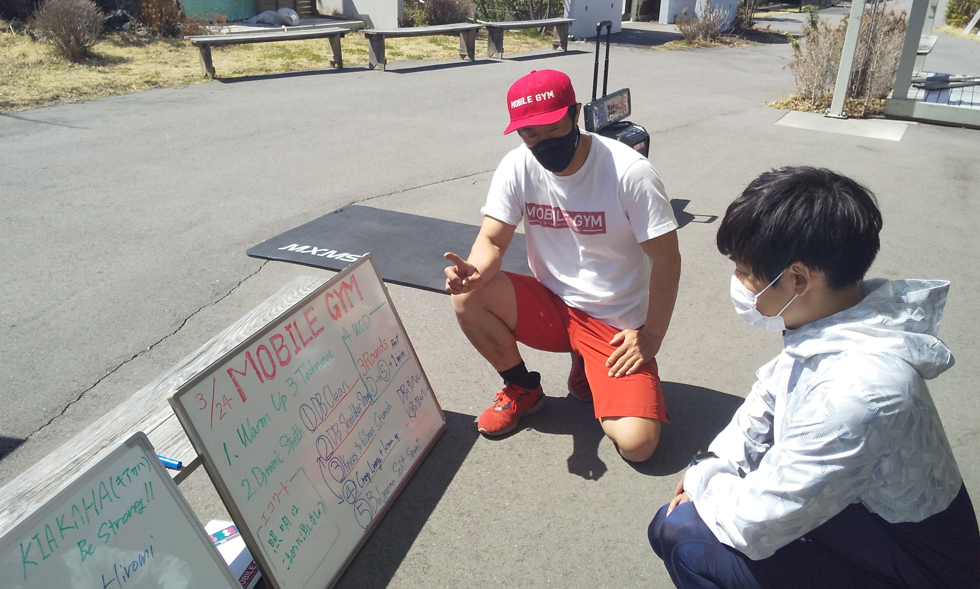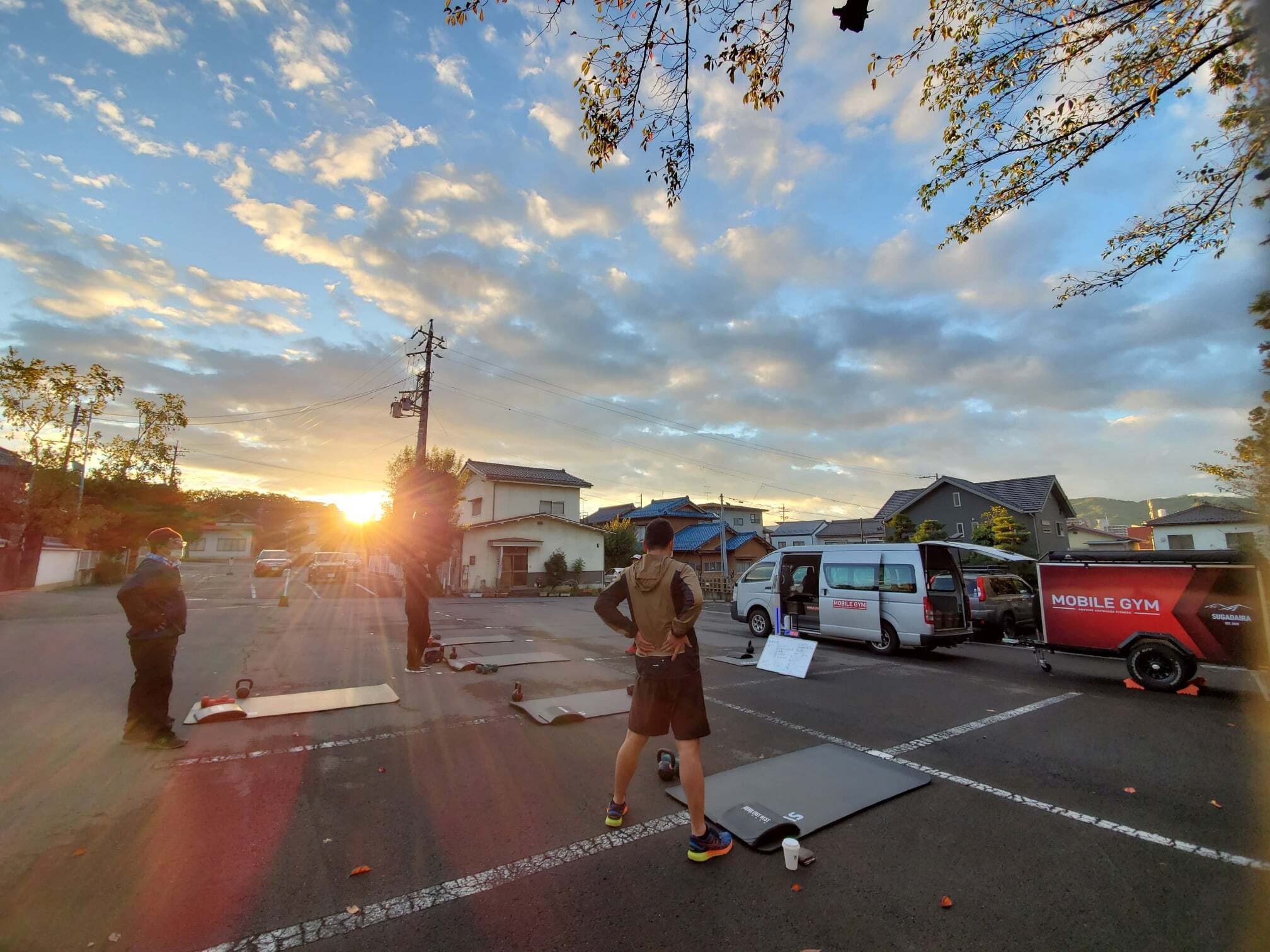 コロナ禍で外でのトレーニングを開始したのですが、普段あまりトレーニングをしない人が週1度のトレーニングで、体がみるみる変わるのを目にしています。コロナ禍で偶然生まれた「MOBILE GYM」ですが、生活筋力(健康に日常生活を送るための筋力)を鍛えるために、自分がトレーニング機材を積んで必要な人のところに出向く。そこに大きな価値を感じています。毎日のラジオ体操の会場、高校生、大学生の部活のグラウンド、会社や施設の駐車場、トレーニング機材を積んで、あなたもあなたの周囲も健康にしたいと思っています。
