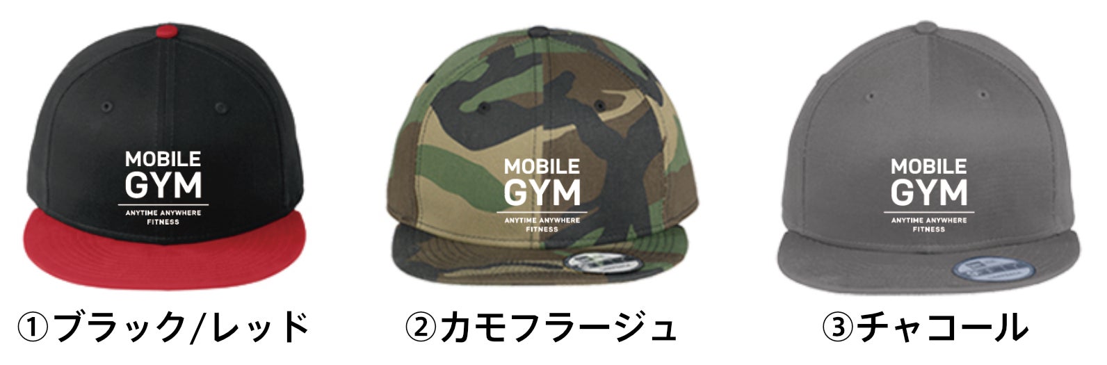 モバイルジムオリジナルTシャツをお送りします。①②③から1つお選びください。