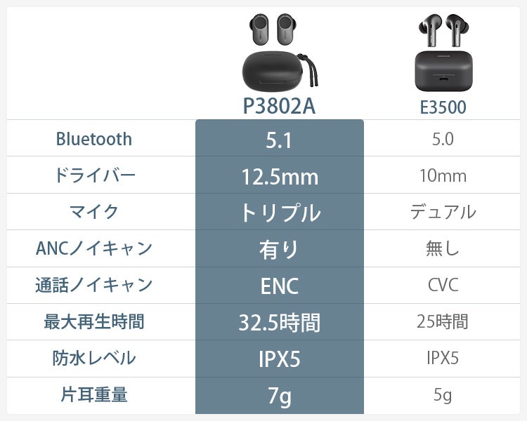 音楽と通話、それぞれに専用のノイズキャンセリング機能を搭載した今回の完全ワイヤレスイヤホン「P3802A」は、いつでもどんな状況でもシーンに合った静寂空間を作り出すプロ。