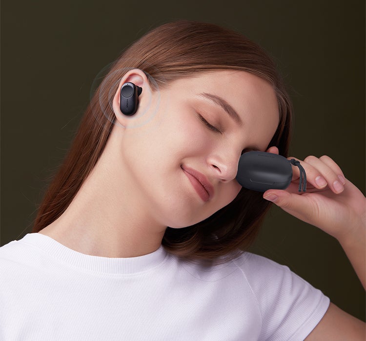 ANCノイズキャンセリングモードと、外音取り込み(アンビエント)モードは指一本ですぐさま切り替えが可能。待ち時間にアナウンスを聞き逃したくないとき、レジで会計をするとき…周囲の音を取り込みながら、程よく音楽を楽しむことができます。