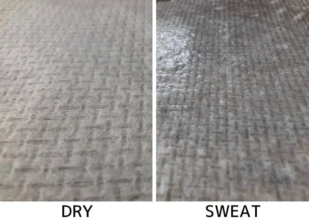 キメ細かく交絡する繊維によって通気性が向上し、速乾力が大幅に上がり通常よりも早く生地が乾きます。