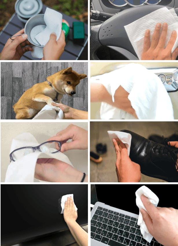 ■家事・お仕事・レジャーやアウトドアなど、何かを拭きたい時に「Cloth Paper」はいつでもお役に立てます。