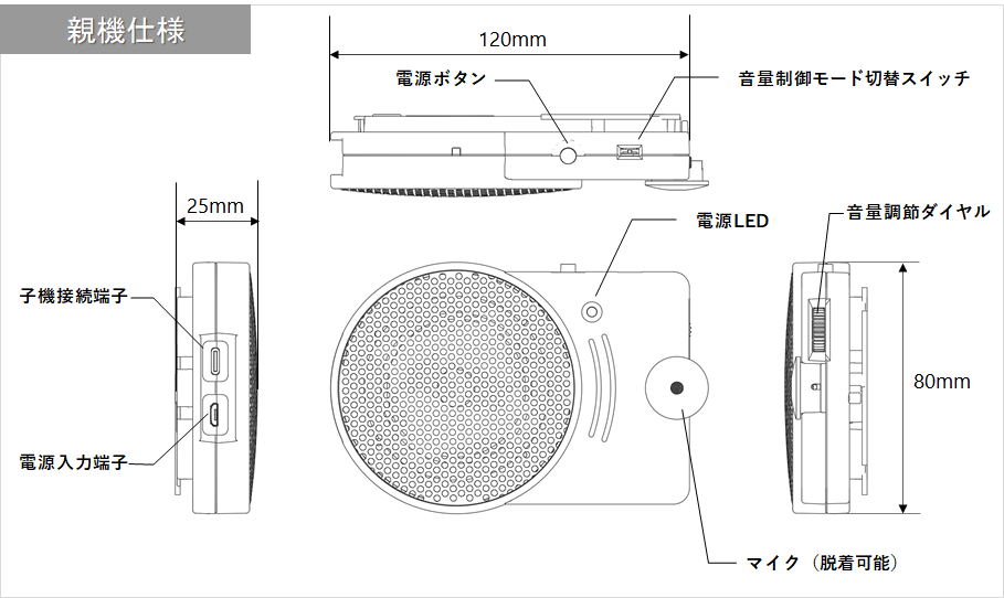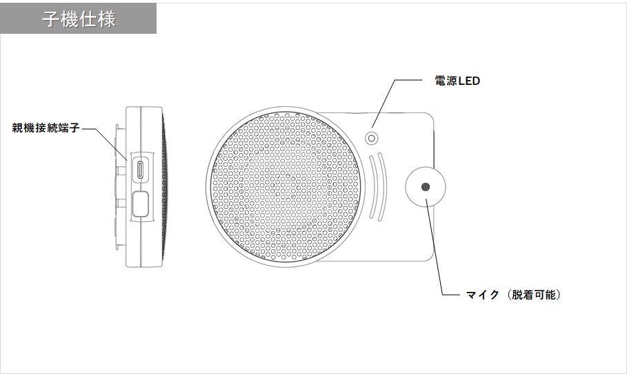 なんらかの事情により親機と子機をパーティションを挟んで取り付けられない場合には、マイクだけをパーティションに取り付けて、本体は机の上に置いて使用することも可能です。