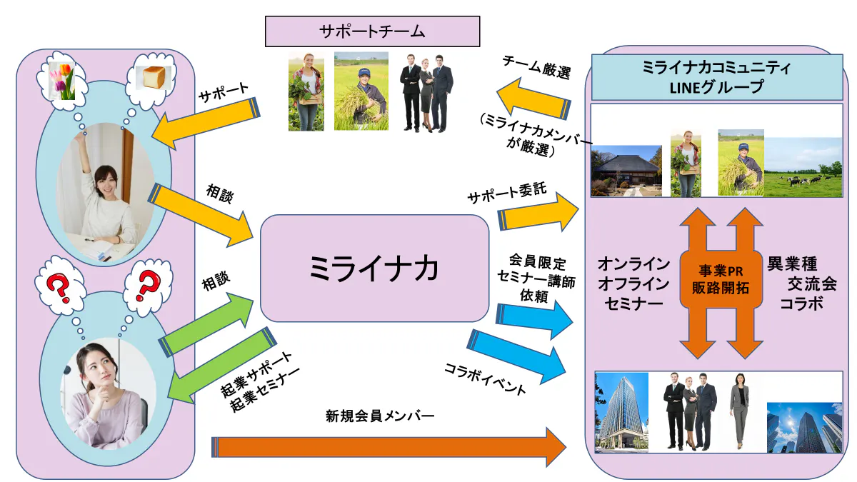 そんな中、メンバーが経験したこと、持っている知識やノウハウ・人脈を生かし、もっとたくさんの人の背中を押すことができるのではないか?と考えたのが、ミライナカのスタートです。