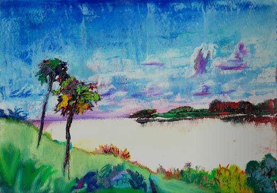 素材:紙に水彩、パステル、オイルパステル、色鉛筆