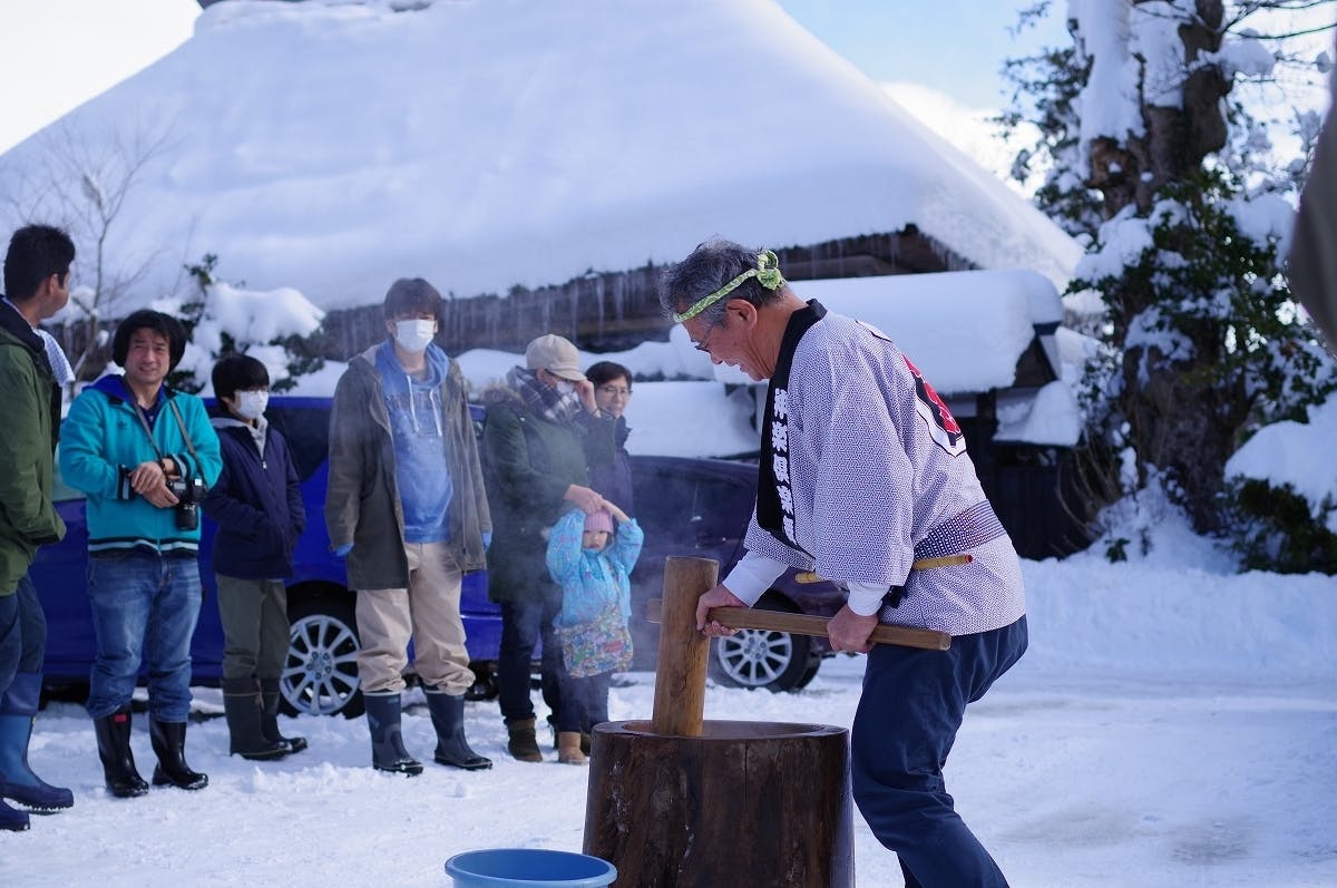 ▲正月行事。毎年1月に餅つきや神楽舞、昔遊びなど、昔ながらの正月行事を楽しめる機会をつくっています。