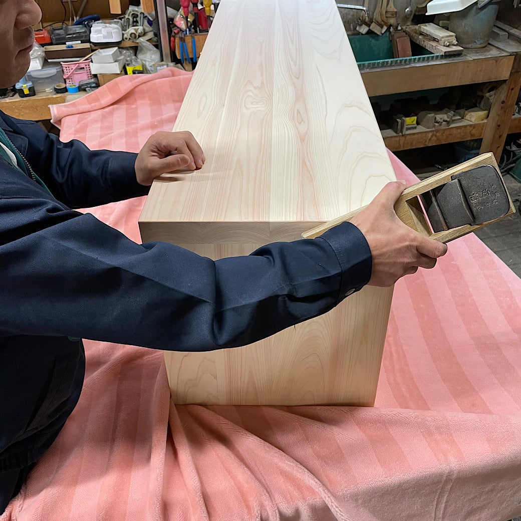 地元の大工さん(匠工房さん)に協力していただき、特注のベンチを作っていただくことになりました。