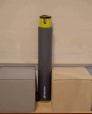 FEELDOM CORE-T POLEは自立します。収納スペースは手のひらサイズほどです(約17㎠)。