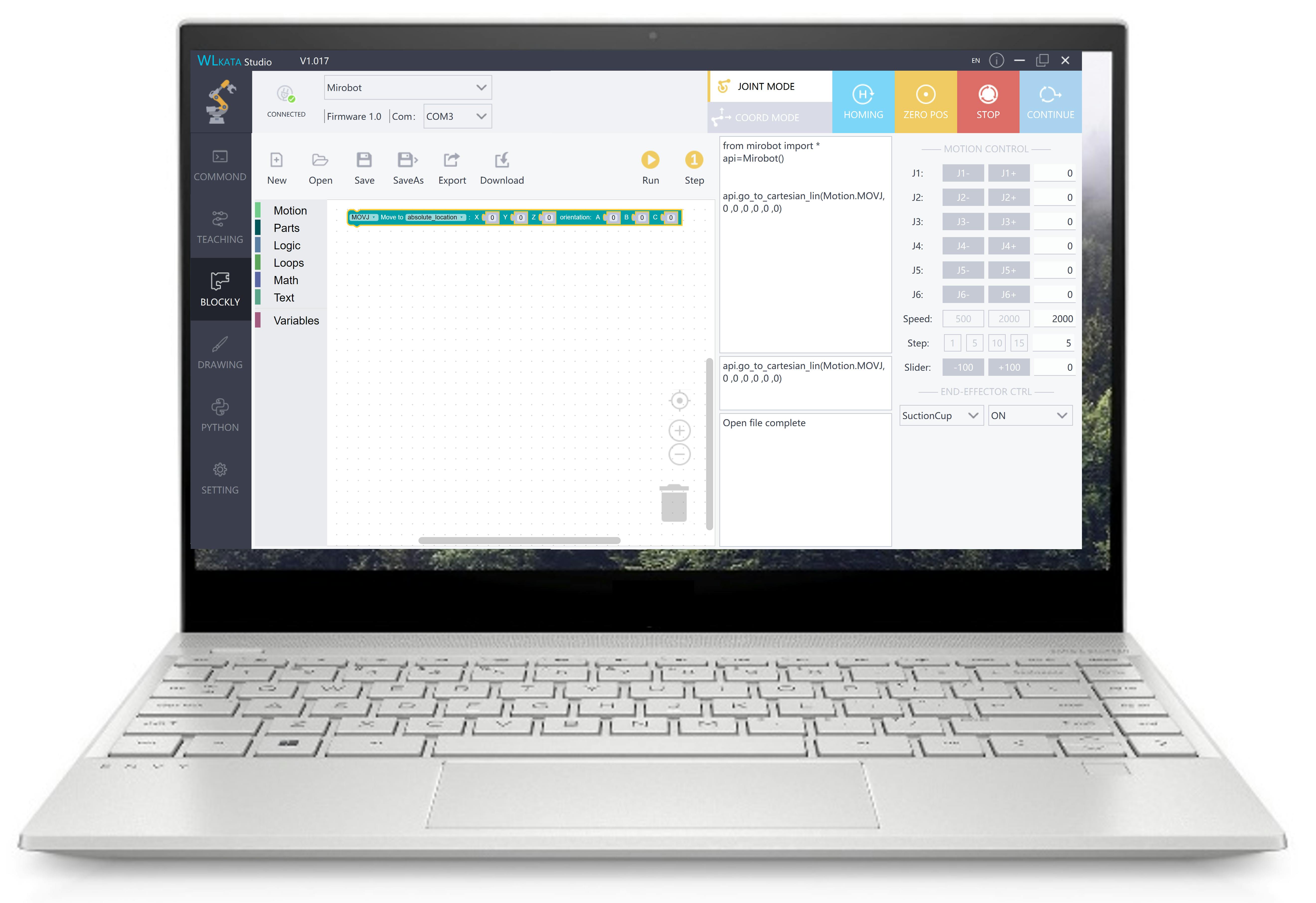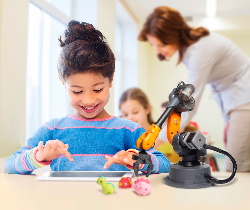 グラフィックなプログラミングが可能なBlockly、Bluetoothコントローラー、および学習モードがあるため、プログラミング初心者でも簡単に使い始められます。1時間もあればMirobotを操作できるようになります。