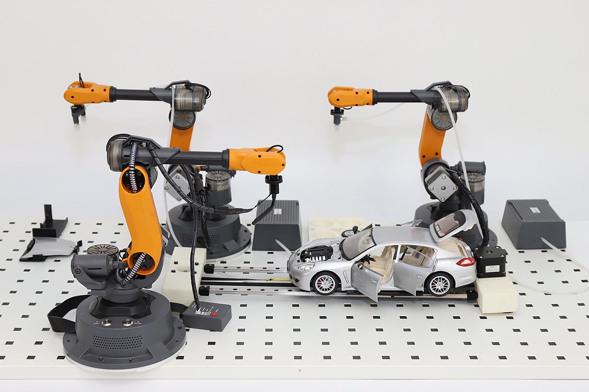 2つ以上のMirobotをコンベヤーベルトと組み合わせることで、卓上またはラボにミニ生産ラインを作成できます。これにより、実行できる作業量が2倍になり、プロジェクトをより早く完了させることが可能です。