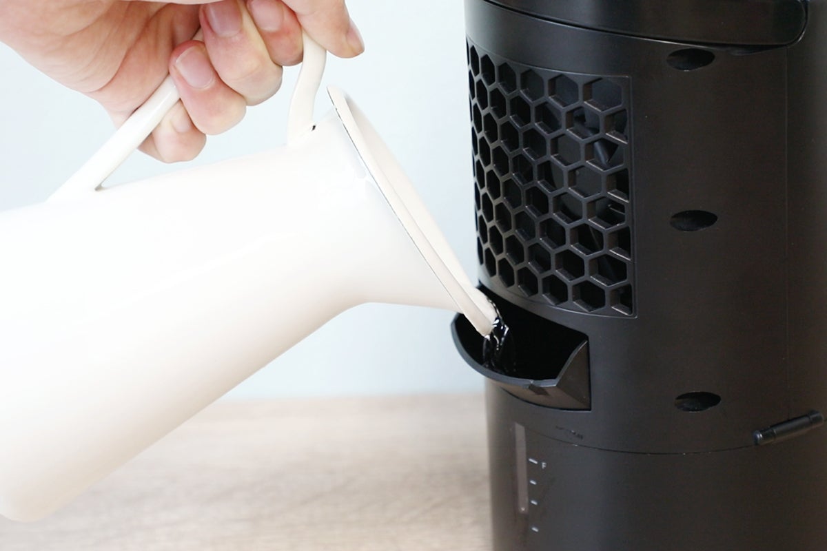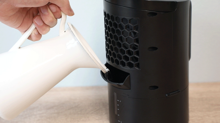 蓋を開けてそのまま背面からラクに水を補充できます。