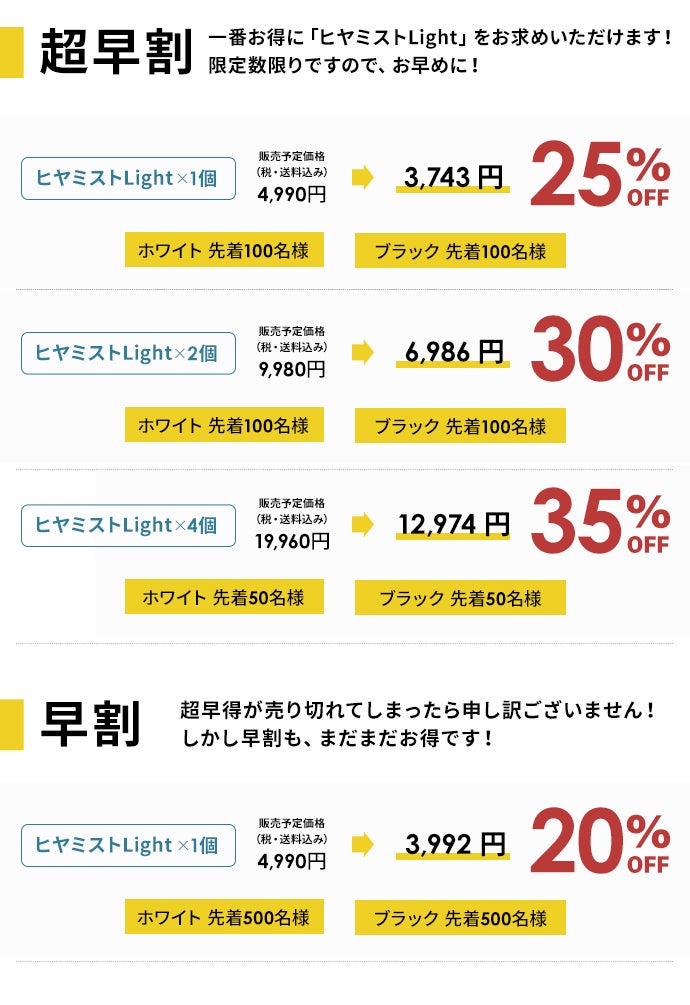 一般販売よりも先に、いち早く「ヒヤミストLight」を手に入れることができます。