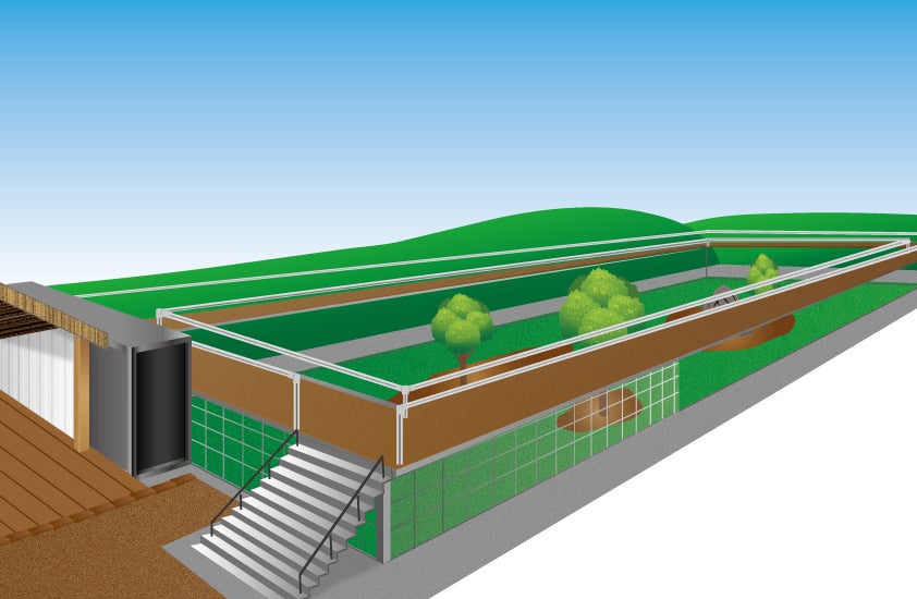 ライオンが自由に走ったり、ごろーんとくつろいだり、自由に過ごせる広いエリアを制作します。