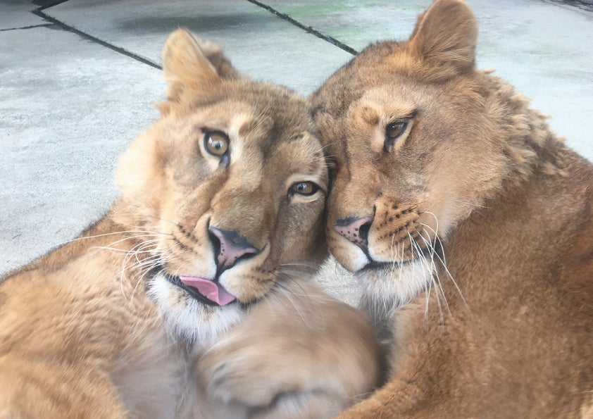 ノースサファリのライオンたちは赤ちゃんの時に園にきてから、毎日家族のように一緒に過ごしてきました。とても甘えっこな子達で、大人になった今もスタッフには大きな体で甘えてきます。