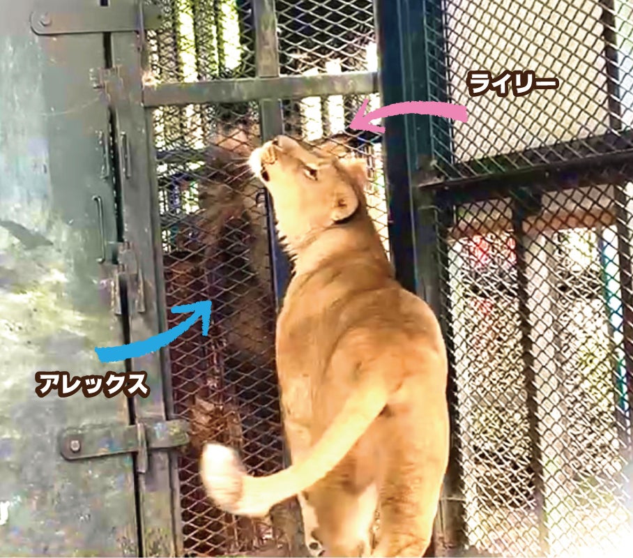 先日はアレックスとライリーが檻越しに、顔を擦り合わせていました。