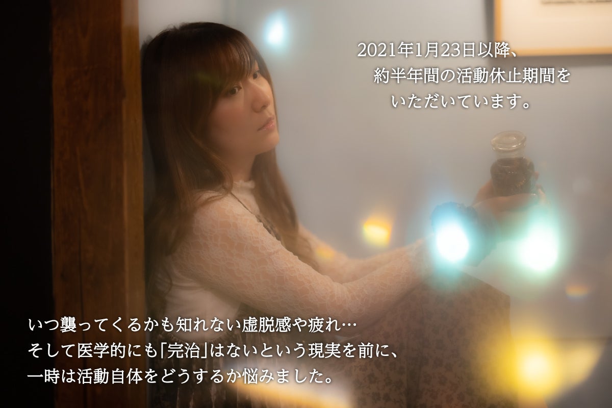 今回は事務所名義ではなく、あえて「水之城マリア」個人での挑戦として、クラウドファンディングをスタートさせました。この挑戦は本人にとって成長の糧であり、病に打ち勝つ強さをもたらすものと確信しています。また、活動休止からの復帰とほぼ同時期に、みなさまとともに作り上げたCDをリリースできることは、この上ない心強さとなることでしょう。