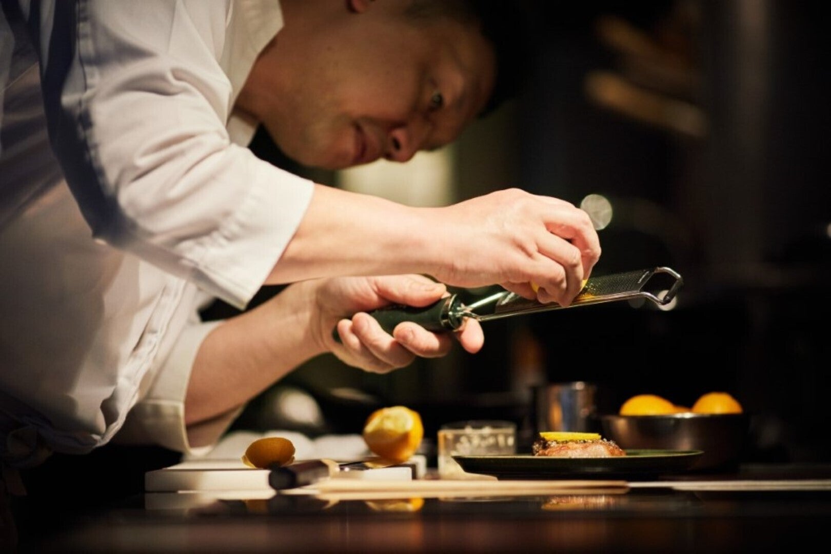 『citrusfarms たてみち屋』のレモンは日本料理店でも活躍しています。その1軒が東京・南青山の『てのしま』。料亭『菊乃井』の本店で副料理長、赤坂店で料理長を務めた林亮平さんが2018年にオープンした和食店で、2020年にはミシュランガイドで一ツ星を獲得しています。