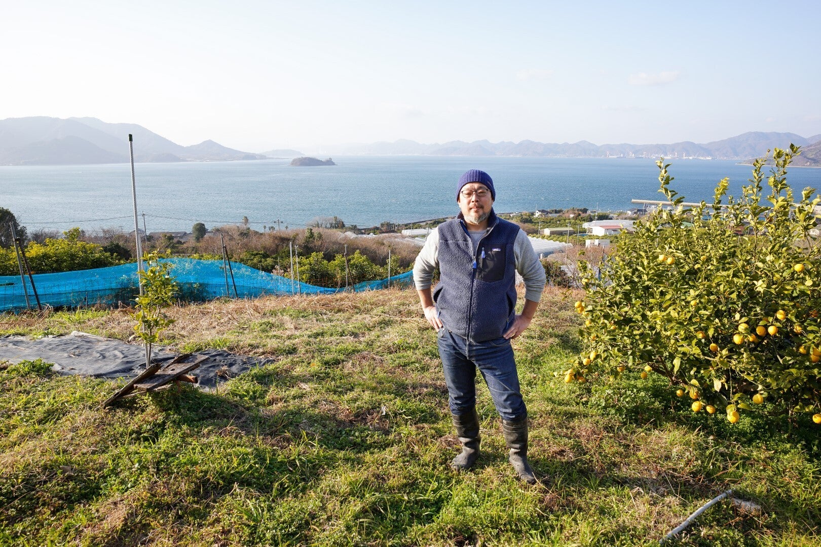 『citrusfarms たてみち屋』の園主・菅秀和です。私は生口島に点在する約9,000坪の農園を管理しています。生口島の隣、大三島の出身。鮮魚仲卸、スーパーマーケットや飲食業界の営業や開発に長年携わったあと、有機農業生産法人から果樹観光農園に転職し、柑橘の栽培事業と6次産業化に取り組みました。そして、生口島の柑橘園管理を任されたことから、島の古民家を借りて移住。その家主から、手に負えなくなったレモン農園の管理を依頼されたことをきっかけに、2014年に独立を決意しました。家主の立道さんに敬意を表し、農園の名前を『citrusfarms たてみち屋』としました。