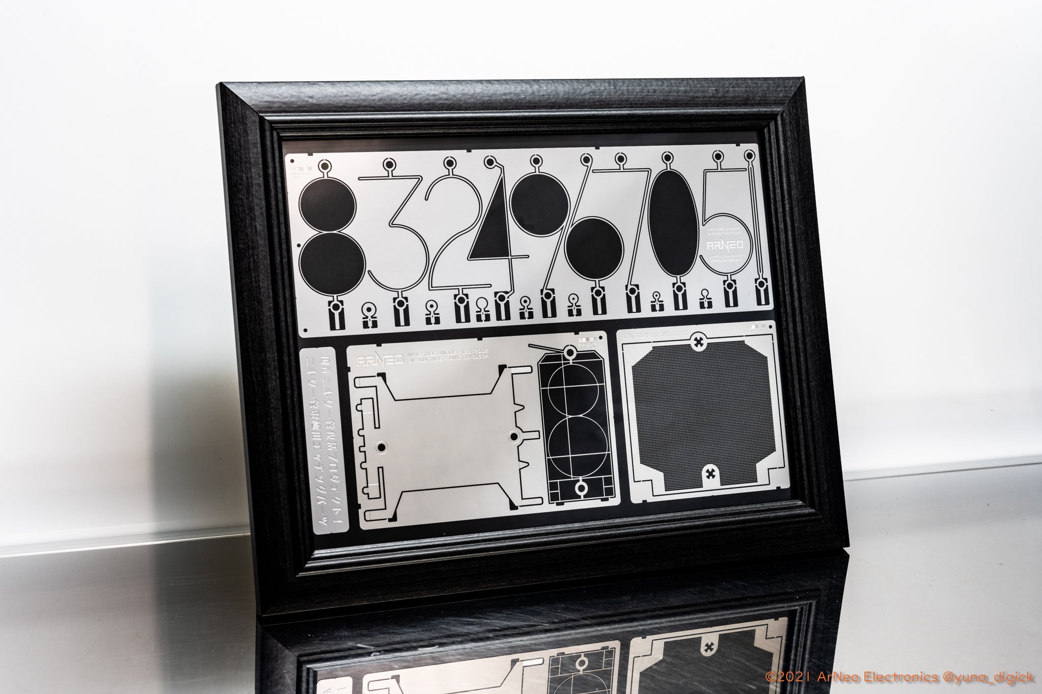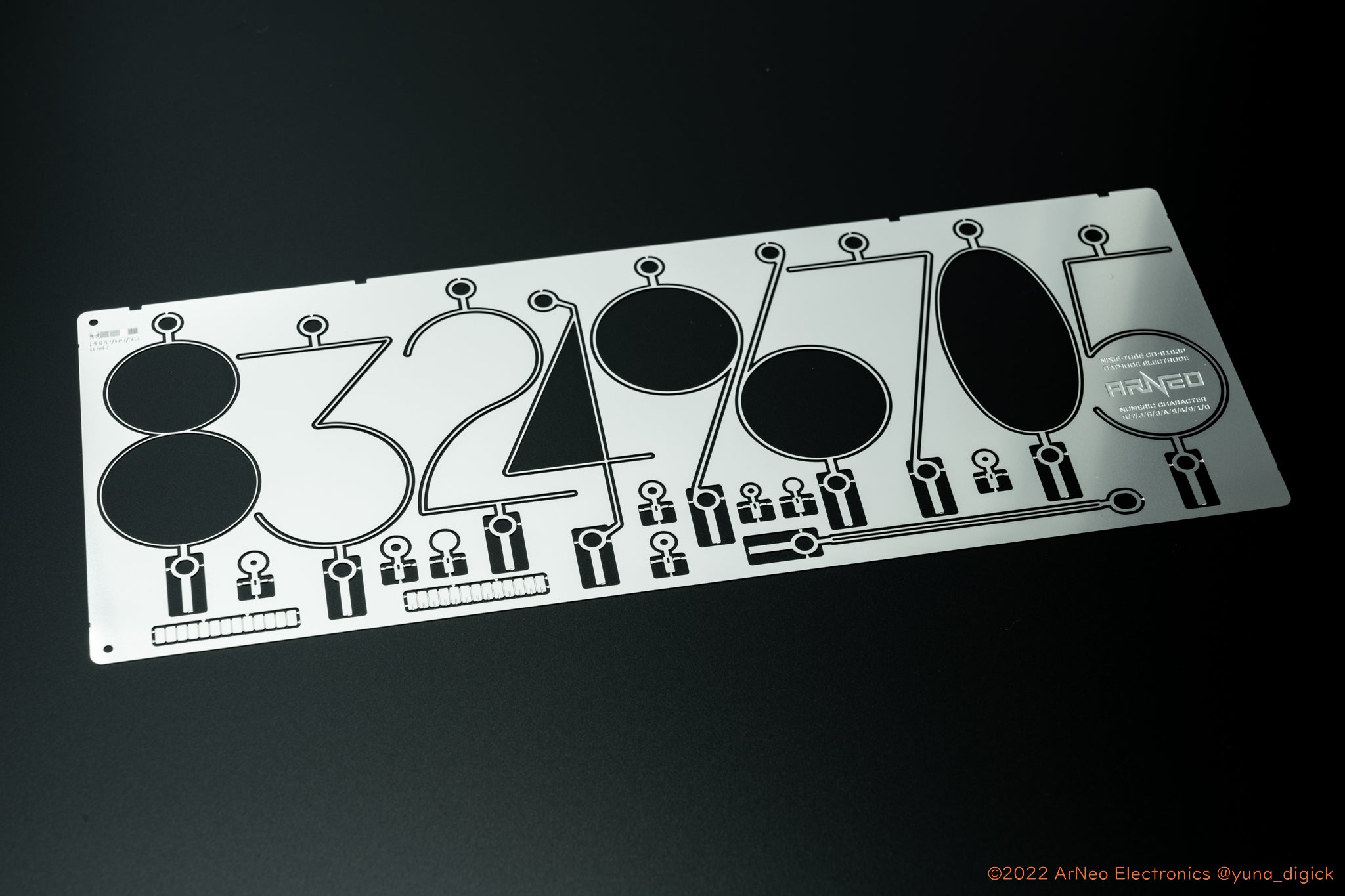 ニキシー管背面の電極の厚みを0.1mmから0.2mmに変更して強度が各段に上がっています。またメッシュ電極の構造でセラミック棒を保持するようにしたことで接着剤が不要となり、加工性と見た目が良くなりました。