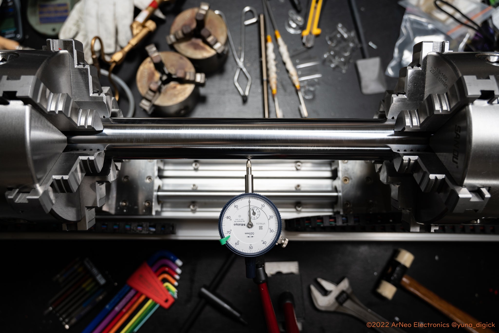 現在判明している課題は技術的には十分解消可能であると判断しています。大型装置の開発は一段落したところで、今後は細かな治具の作成や作業工程の改善を進めつつ、120本のニキシー管を組み上げる作業を行います。ガラス加工自体の技能がまだまだ未熟なところがあるため、数をこなして精度を高めてゆきます。