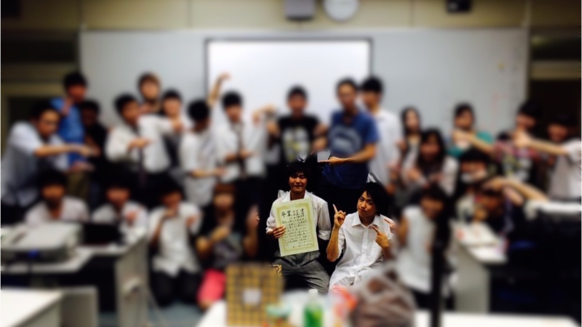 そして、彼がアメリカに旅立つ前の最後の日、彼には内緒で、仲の良い人たちを集めてサプライズの卒業式をしました。