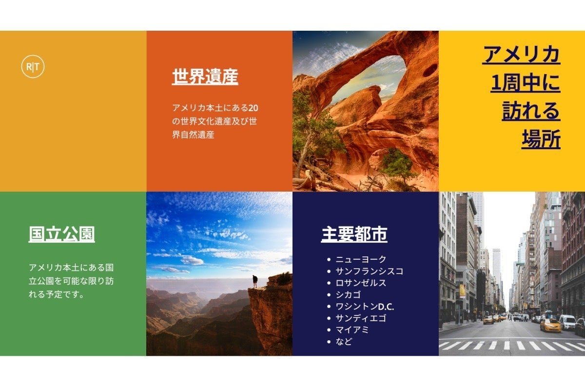 - → アメリカの一部の地域や横断ではなく本土の全てを訪れることができます。
