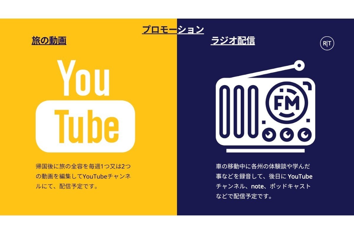 家にいても、旅の気分を味わえるような動画を撮影・制作し、YouTubeチャンネル等に投稿することで、多くの人の元気や活力になれると考えています。
