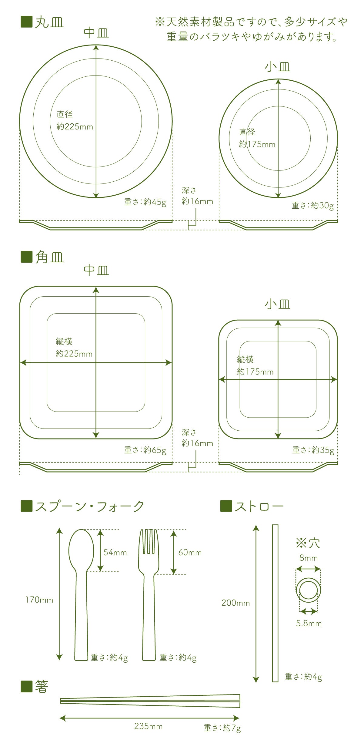 使用する食材によって異なりますが、自然素材の無塗装ですので、耐久性は使用・洗浄のたびに落ちていきます。お皿としての強度は90回以上洗浄しても大丈夫ですが、表面にササクレや毛羽立ち、料理のシミや油汚れが目立つようになりましたら破棄・交換してください。
