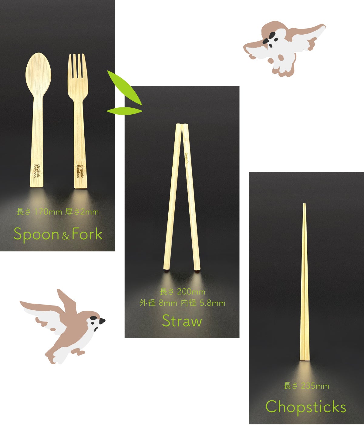 薄くて軽量で、強靭、今までのプラスチックや紙の使い捨てカトラリーとは全く異なる新しい価値観をご提供します。