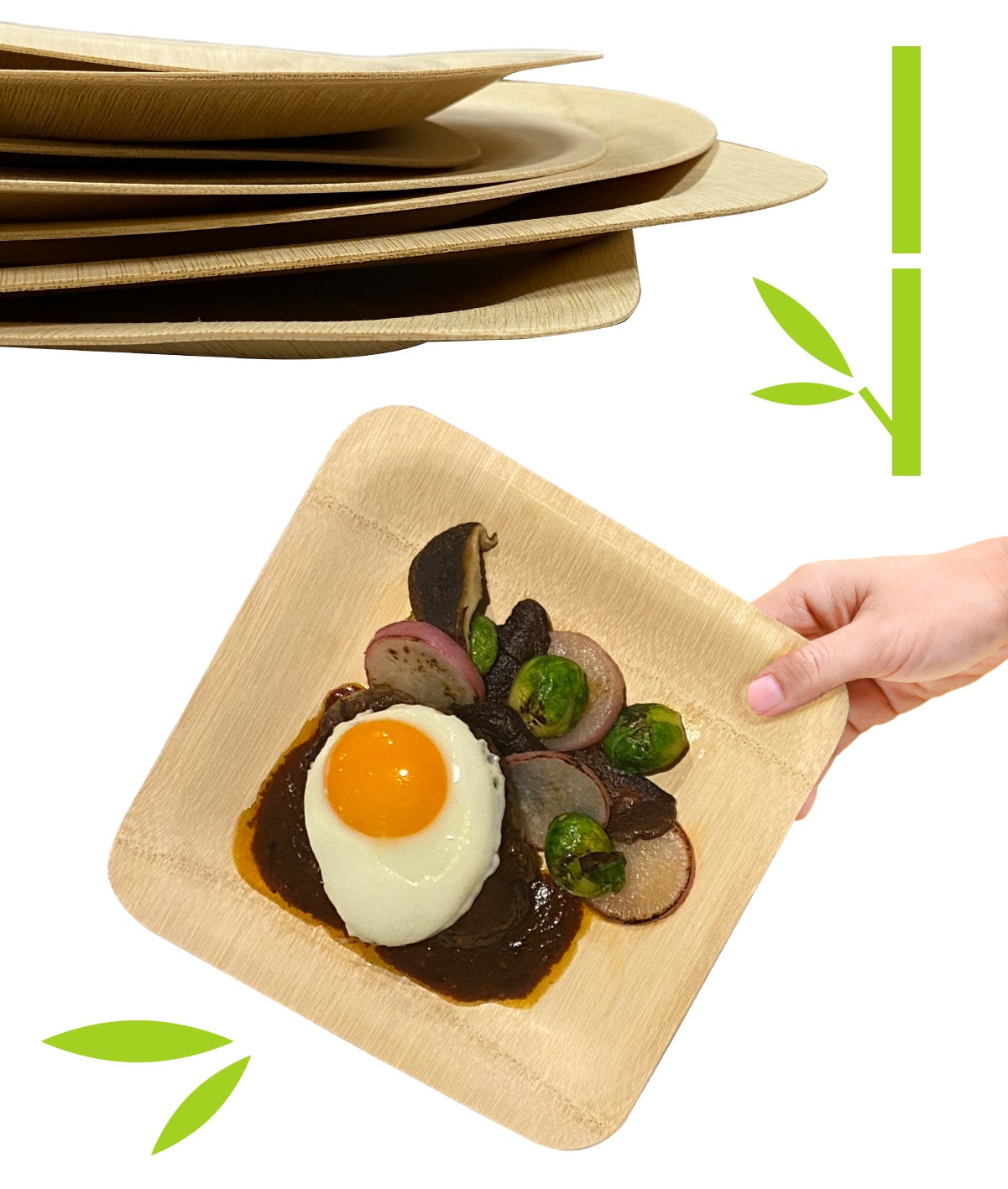 竹ならではの細くて丈夫な繊維質により、皿の厚み約1.5mm前後という薄さながら、紙皿やアルミ皿にはない強度と軽さを実現しました。キャンプなどのアウトドアごはんやパーティ等の立食の場面でも、料理をしっかりと受け止めて、落としません。