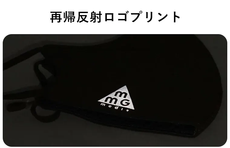 暗闇で光が当たると反射する特殊な「再帰反射プリント」でロゴプリントが入っています。