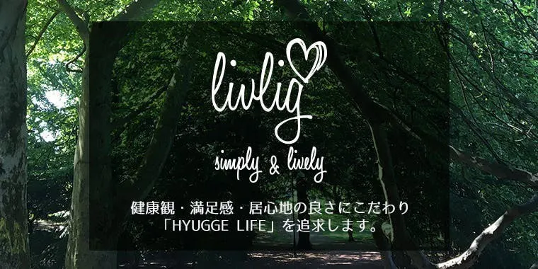 「simply&lively シンプルにいきいきと」 忙しさのあまり「楽しむこと」を後回しにしてしまいがちな毎日… livligは「HYUGGE ヒュッゲ※」を意識しつつ、私たちの健康観・満足感・居心地の良さを追求しました。 ワーク・ライフ・バランスの実現を目指した商品を皆様にお届けします。