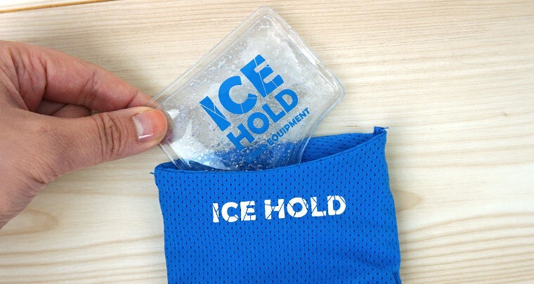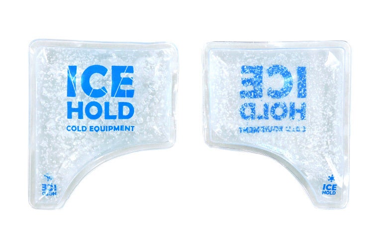 保冷剤はサポーター・手のひらにフィットする特殊な形状で作ってあり「ICE HOLD」のロゴプリントが入っています。