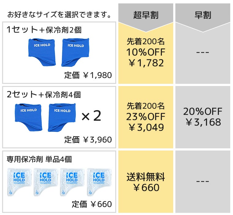 付属:専用保冷剤2個(右手用1・左手用1)※サポーターパッケージに同封