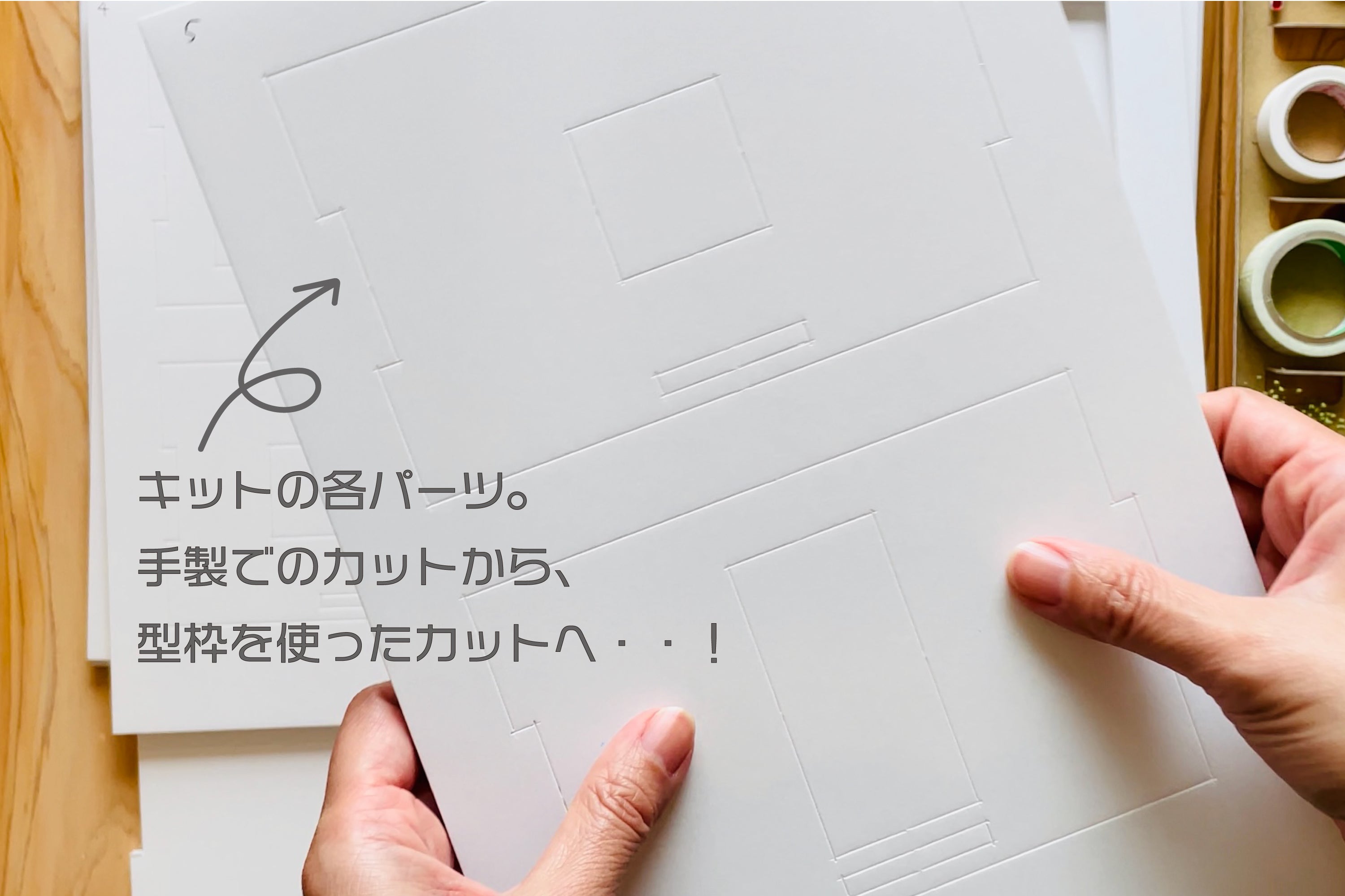 このワークショップは、工作キットなしでは始まらないのですが、現在全ての工程が手作業です。1セットあたり約2.5時間かけて事前にカッターでパーツを切り出し、参加者にお渡ししています。これでは多くの方に届けるのが難しい状況のため、型枠をつくって量産できる体制を整えたいと思っています。
