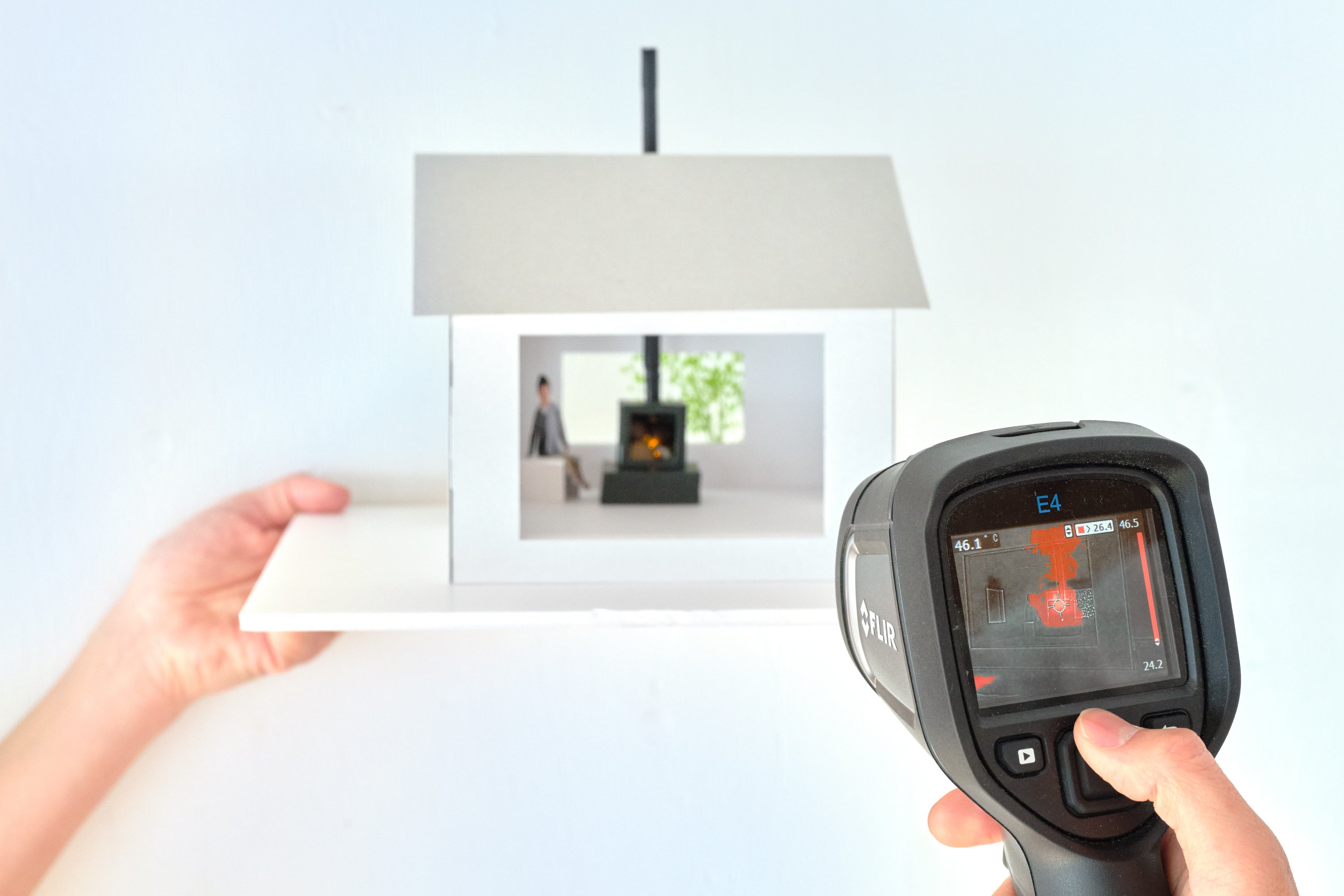 薪ストーブをつくって、薪の代わりとなる熱源(アツアツの小石)をストーブに入れます。そこから出た熱の動きを、プロが使うサーモカメラで見ていきます。