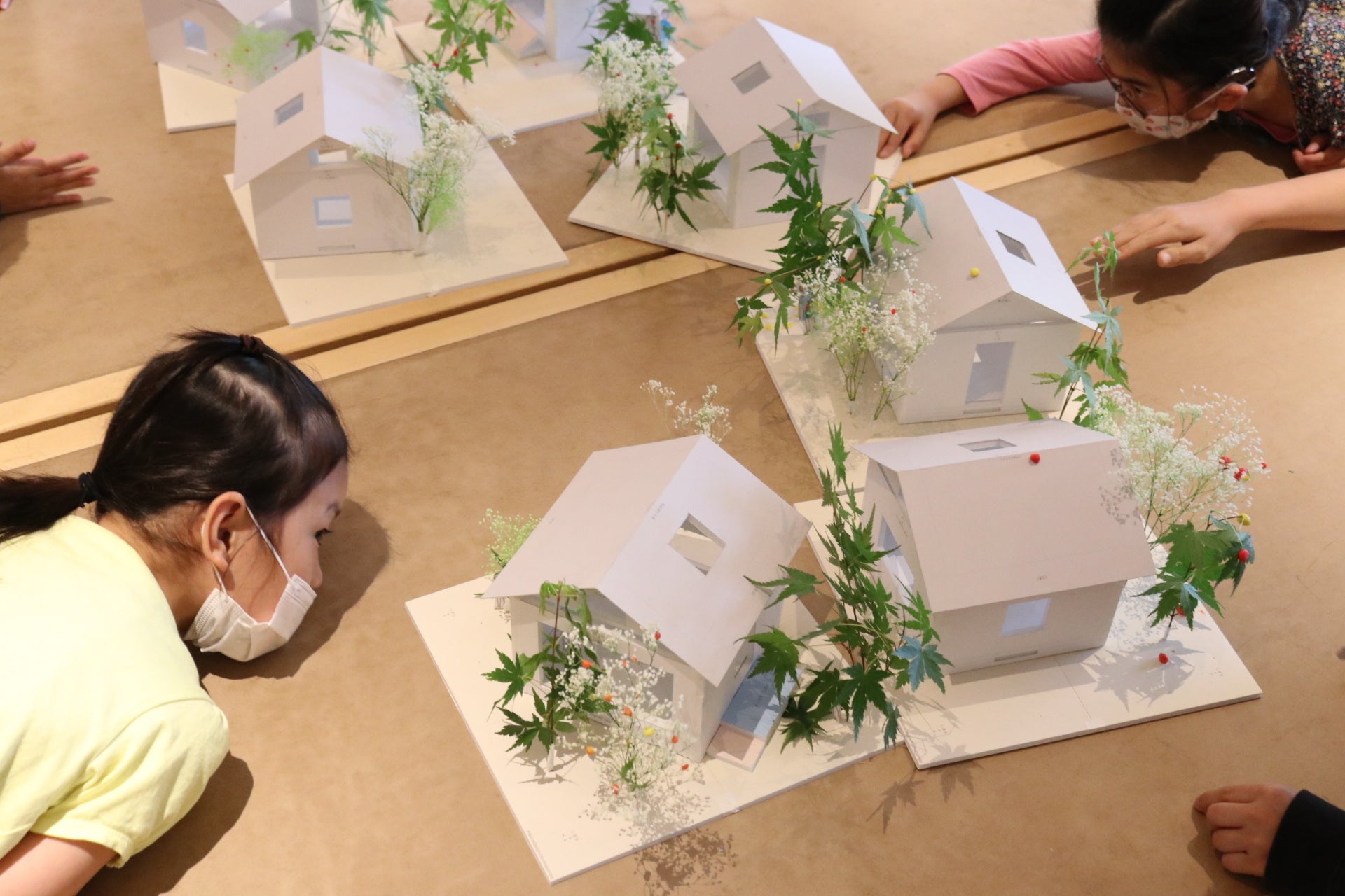 リターンのワークショップ(会場版)では、最後に、みんながつくった家を合わせて「まち」をつくります。