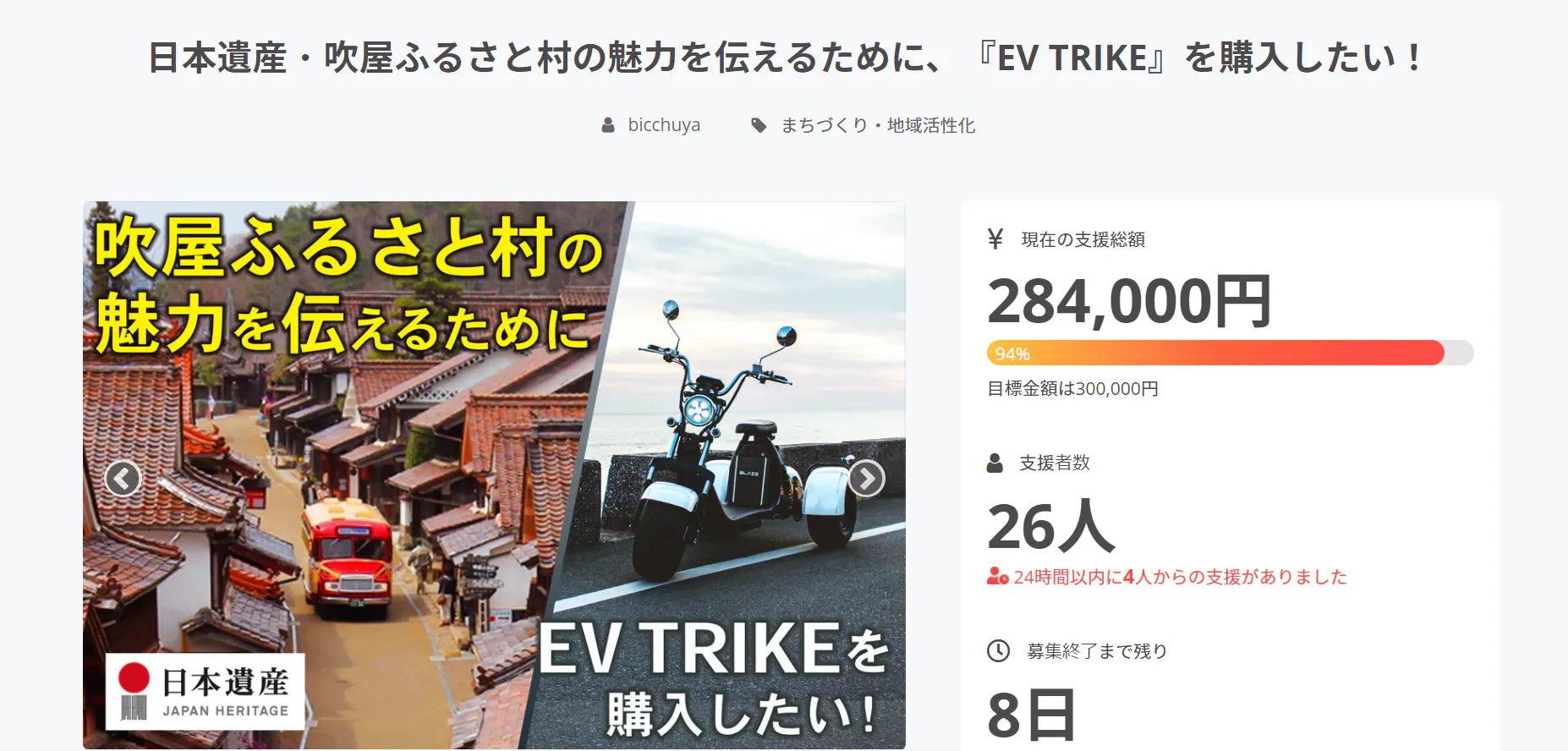 達成率94%に到達しました!今までご支援いただいた皆様、大変ありがとうございます。
