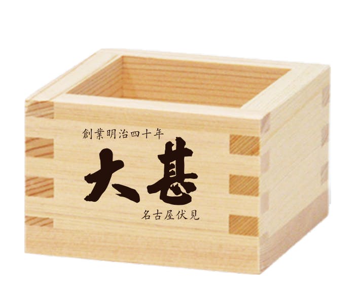 大甚のロゴが入った、オリジナルデザインの升。日本酒を飲む際にお使いください。