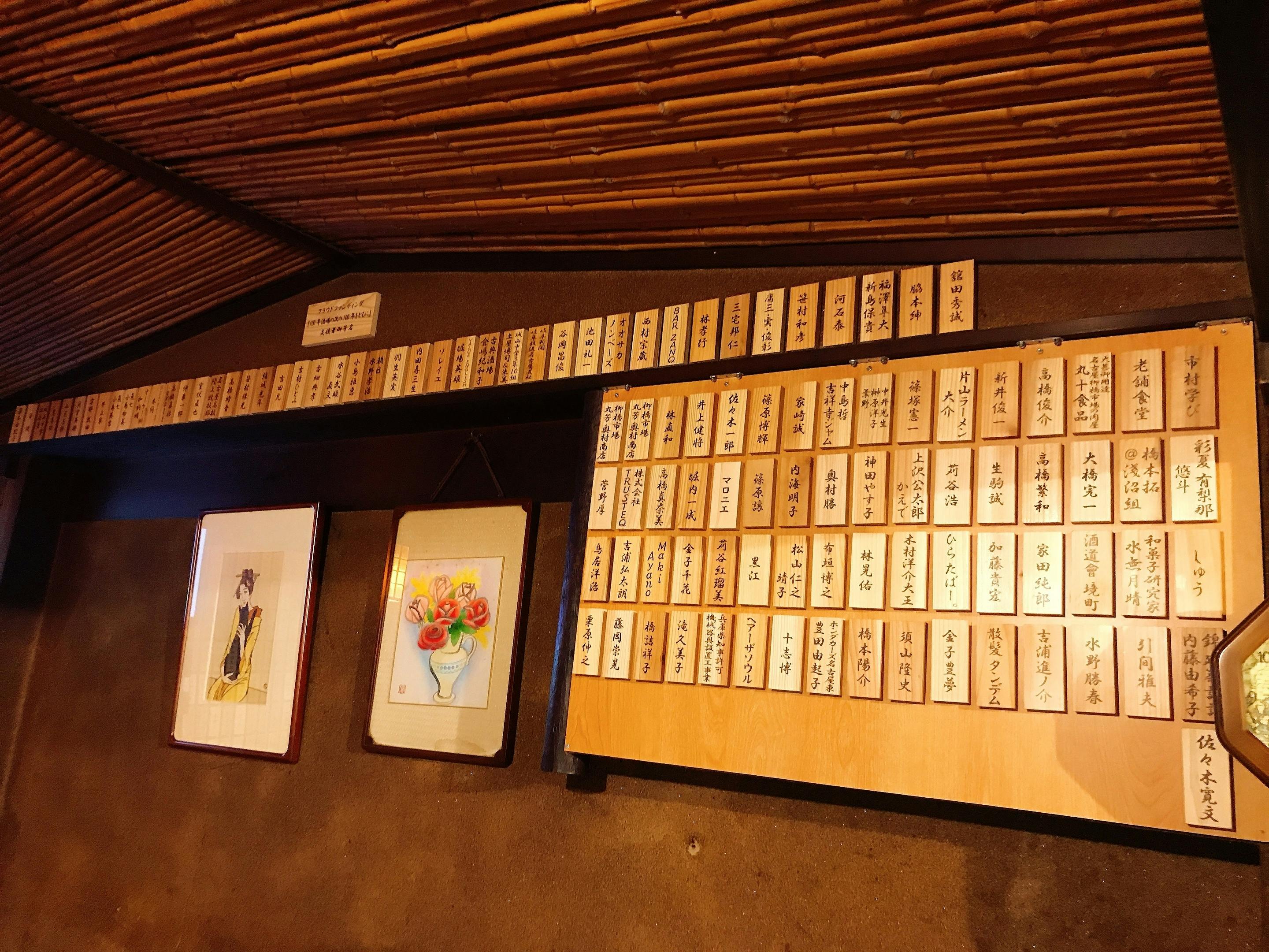 ご支援してくださった方への感謝の気持ちを込めて、木札にご希望のお名前を彫刻し、半永久的に店内に飾らせていただきます。