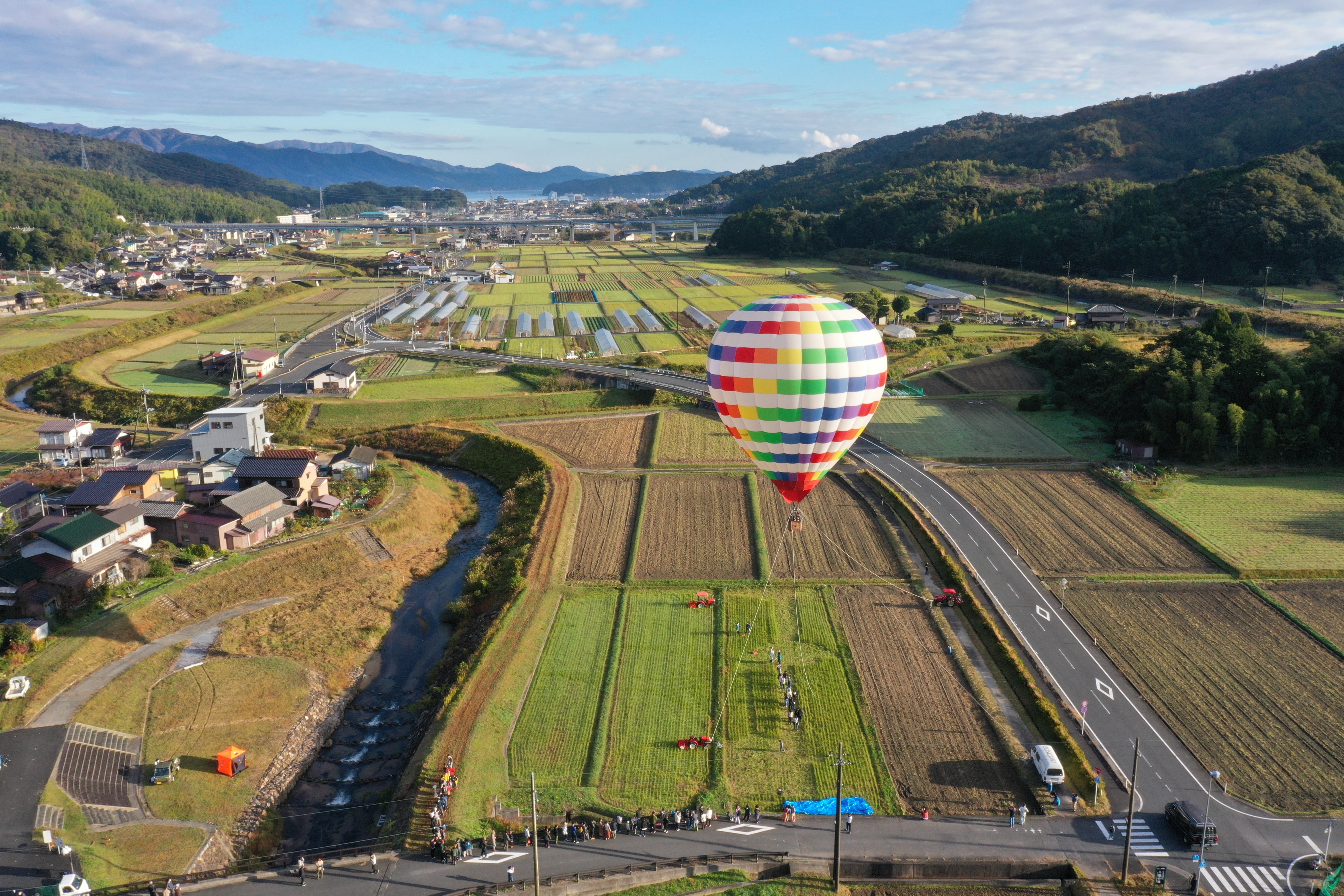 当日は天気にも恵まれ、主催者のmusubiさん、カミヤズラボの皆さん、地域の方々、ユニークな出店者さんたち、遊びに来てくださった方たちのおかげで大盛況な一日となりました。来場者数は600人、気球への搭乗者は150人前後で、自治区の催しでこんなに人が集まったのは前代未聞だった、と自治会長さんから労いのお言葉を頂きました。上宮津という地区は本当にエネルギッシュで助け合いとおもてなしの精神が高く、そのような機会を頂いた私の方こそ、感謝するばかりです。途中で風が出てしまい、安全を考慮して即座に中止にいたしました。長時間お待ち頂いたのにご搭乗頂けなかった皆さまには、心よりお詫び申し上げます。私自身、非常に残念で、必ずまた同じ様な機会を作りたいと心に誓っています。また、課題も沢山見つかりました。それらの課題を改善し、皆さまへ安全で夢いっぱいの空間をお届けできるようにこれからも精進して参ります。引き続き、応援を頂けますと幸いです。山尾太郎