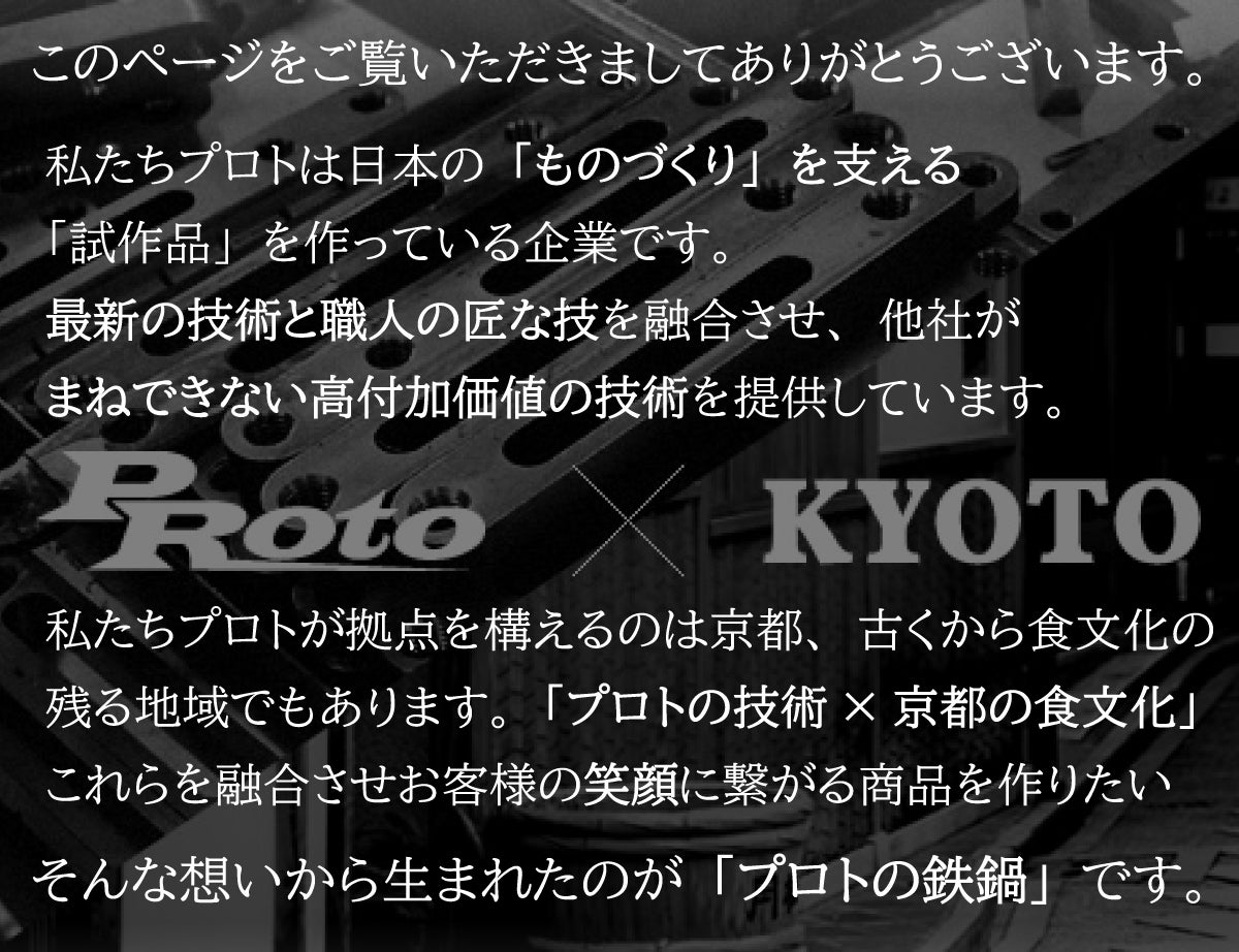 プロトは、新型コロナウイルスの影響で、本業である自動車部品の試作品製造の依頼が減少、富山の工場を動かせない状態です。ですが、労働者を守るために工場を動かさないといけない。そこで、Protoの鉄鍋でクラウドファンディングに挑戦しようと決意しました。Protoの鉄鍋で皆さんが笑顔に、皆さんのご支援で労働者が笑顔になるようなプロジェクトにします!!