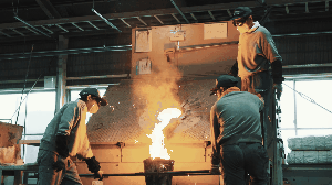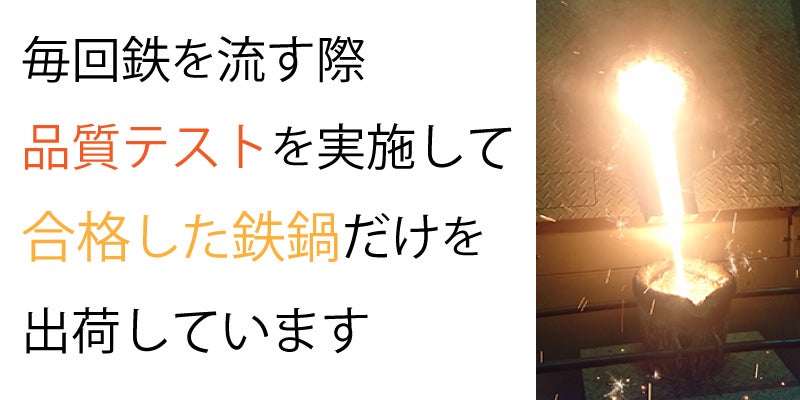 鋳型と呼ばれる砂でできた型に鉄を注湯します。一つ一つ品質テストを行なっているので安心しておつかいただけます。