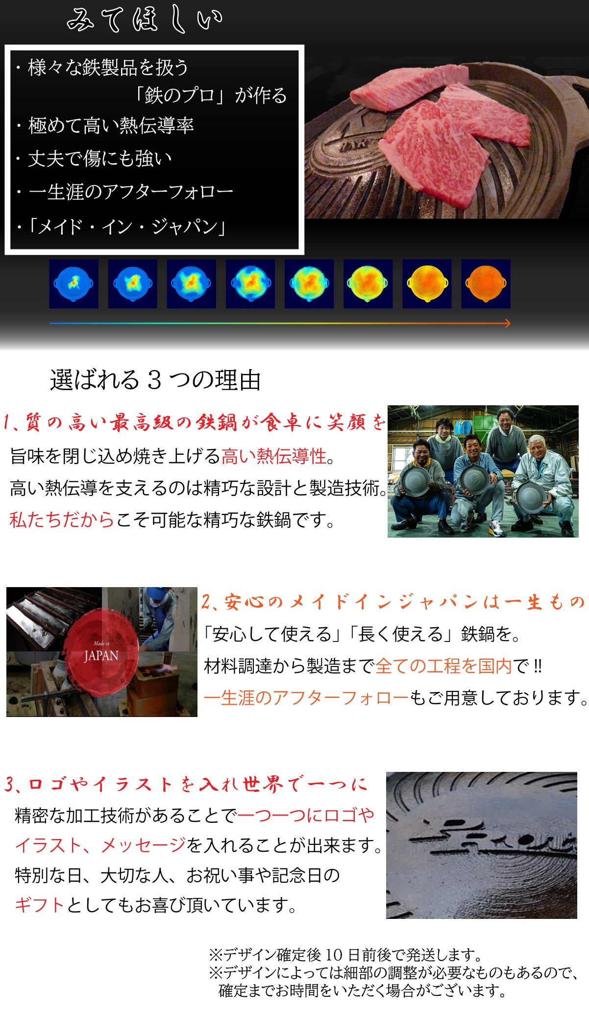 鉄鍋自身の精巧さ精度の高さはもちろん、細かなイラストやロゴも正確に再現