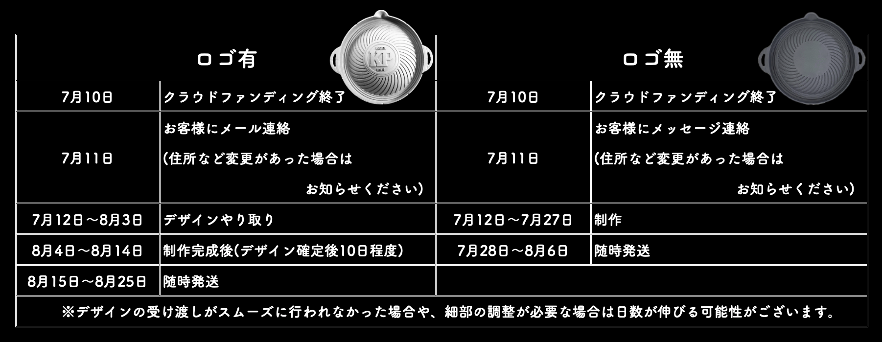 A.クラウドファンディング終了後となりますので8月より順次発送となります。