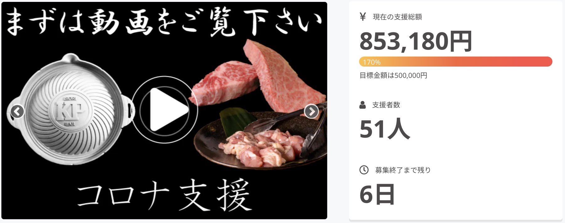 2021/07/09 11:33170%到達 & ロゴあり鉄鍋・肉セット追加しました!!皆様ありがとうございます!クラウドファンディング終了まで1週間を切りました!コロナウイルスが怖くて帰郷できていない方!STAY HOMEで元気がなくなっている方!!帰郷できないから、オリジナルのロゴやメッセージの鉄鍋を送りませんか!家にいることが多くて疲れてますよね!家で、プロトの鉄鍋で、KPの肉を食べて元気を出して下さい!プロトの鉄鍋ではメッセージからロゴまで入れることができます!みなさんぜひ家族に、友達に、親戚に、自分に普段会えない人や自分へのご褒美に一度ご検討ください!プロトの鉄鍋・KPの肉で皆様の笑顔が増えると私達は嬉しいです!!! もっと見る