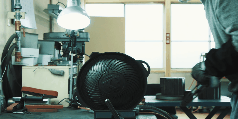 サンドブラスト加工で表面に付いている砂をきれいに飛ばし、錆びついたり焦げつかないようにします。