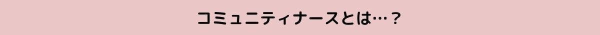 コミュニティナースとは地域に溶け込んで、みなさんの暮らしの身近な存在として、健康を守る活動をする人のことです。