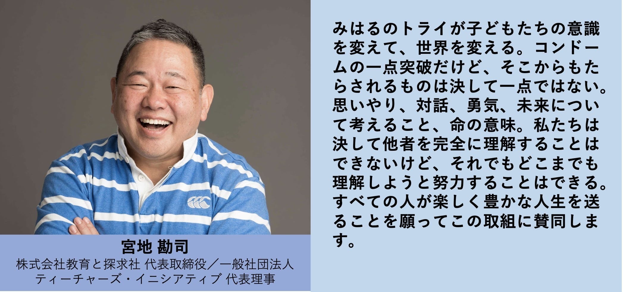 そしてまた、学校という空間がもつ可能性の大きさは計り知れません。学校だからこそ伝えられることがあります。性について同年代と一緒に学んだ知識や関係性、多様性や違和感を共有した経験は、きっと10年後や20年後に 「ニッポンの性教育 の "当たり前"」 を変えていく基盤となると思うのです。