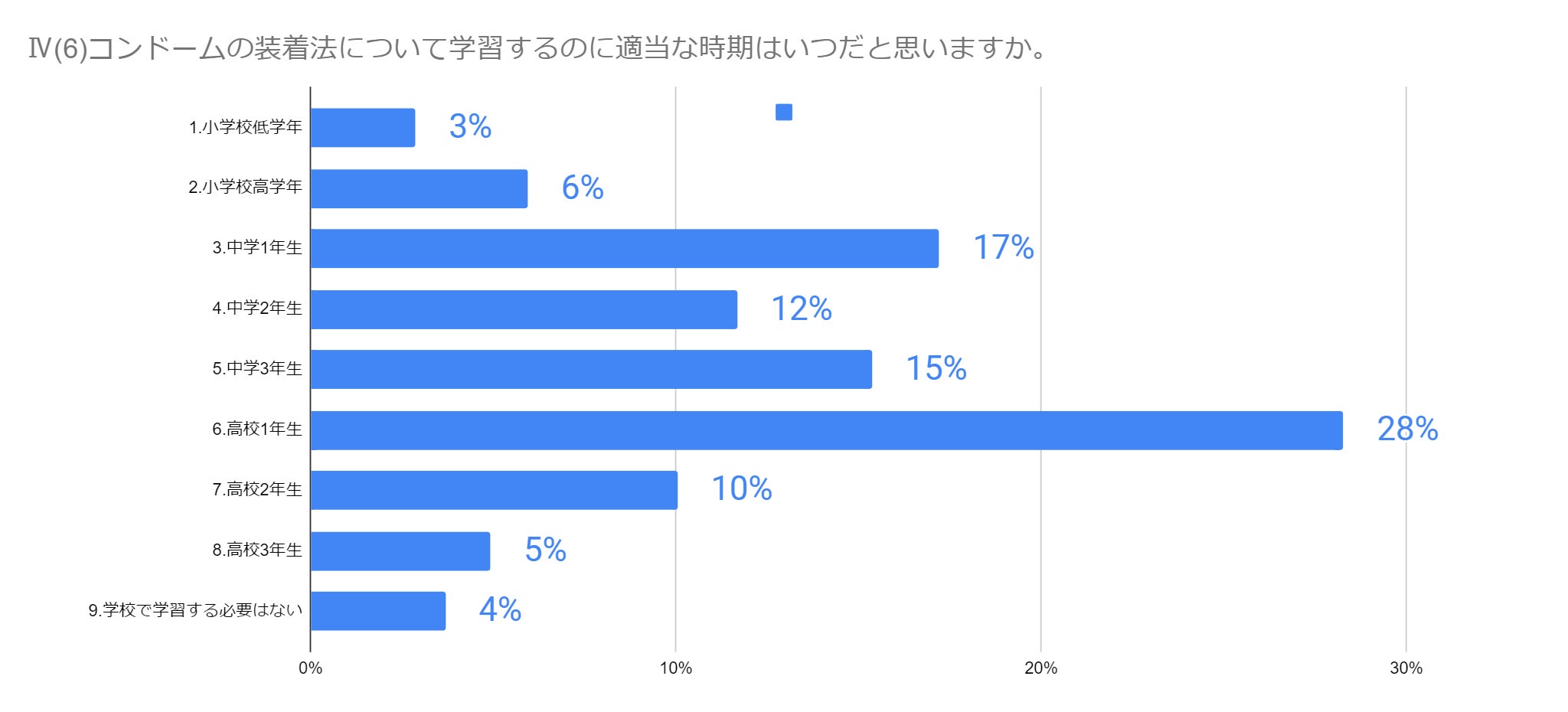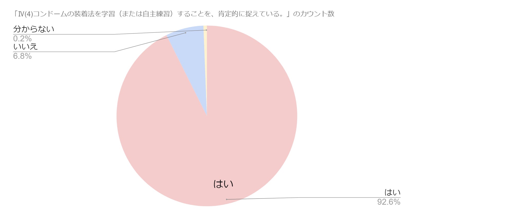 ・全体講演会後に配布し、実際に自分の指に装着する練習をしたことで、比較的真面目に取り組んでくれる生徒さんが多かった。「初めて触った」「思ったよりもうまくできなかった」「家に帰ってからYouTubeで復習しようと思った」「実際に使うまでに正しい使い方を知れて良かった」等、好意的な感想が多かった。まずコンドームの必要性と正しい使い方を伝える。その後、実際に生徒さんに触らせてみて、もう一度講師が前で正しい装着法を見せる、という段階を踏んだ使用の仕方をした。(兵庫・外部講師)